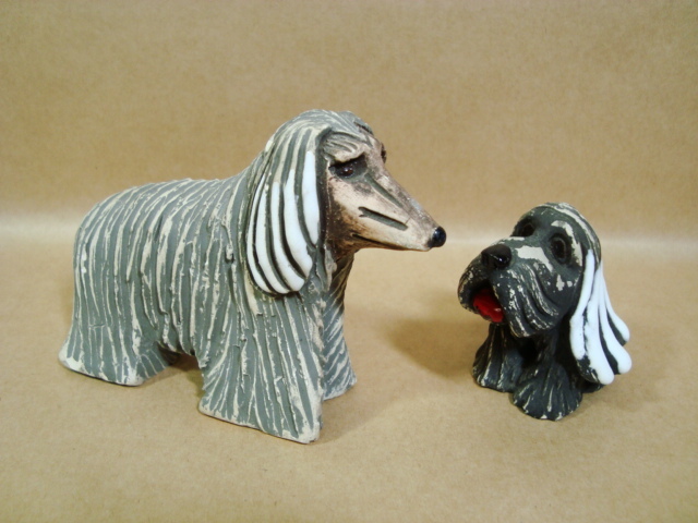 - ヴィンテージ★ウルグアイ製 陶器 アフガンハウンド/犬の置物★2点で