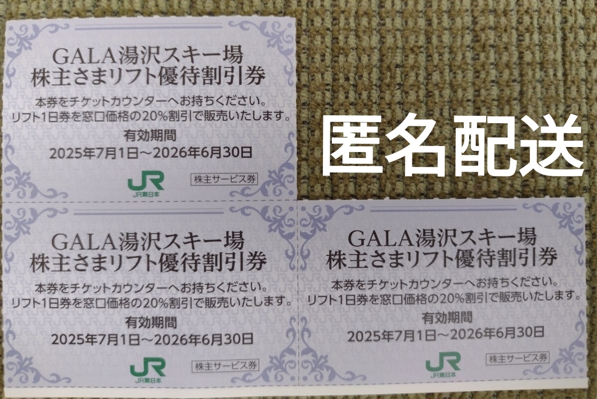 > GALA湯沢スキー場リフト優待割引券 3枚 2026年6月30日まで(JR東日本 株主優待 ガーラ スキー スノボ 冬山 登山 匿名配送