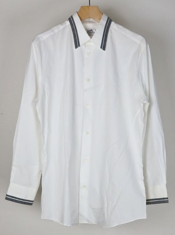 > HERMES wool decoration sellier buttons shirt size 41 エルメス ウール 装飾 セリエ ボタン 長袖 シャツ c0085