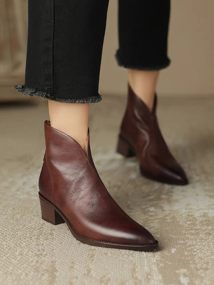- ショートブーツ レディース ブーツ 歩きやすいストレッチ ブーツ ウエスタンブーツ くい チェルシーブーツ チャンキ ブラウン 23.5cm