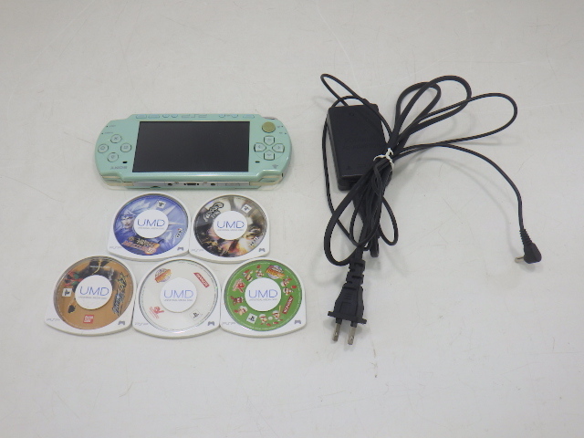 > h5J018Z- SONY ソニー PSP-2000 バッテリーなし ACアダプター/UMDソフト 5枚 動作未確認 ジャンク品
