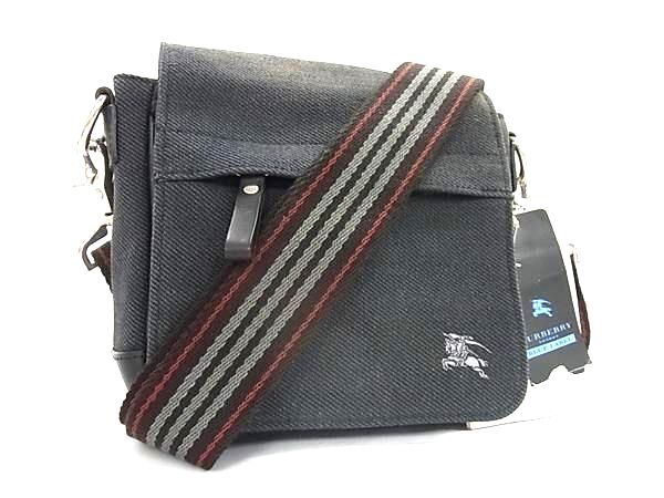 - 1円 BURBERRY バーバリーブルーレーベル キャンバス×レザー ショルダーバッグ クロスボディ 斜め掛け メンズ ブラック系 BM9444