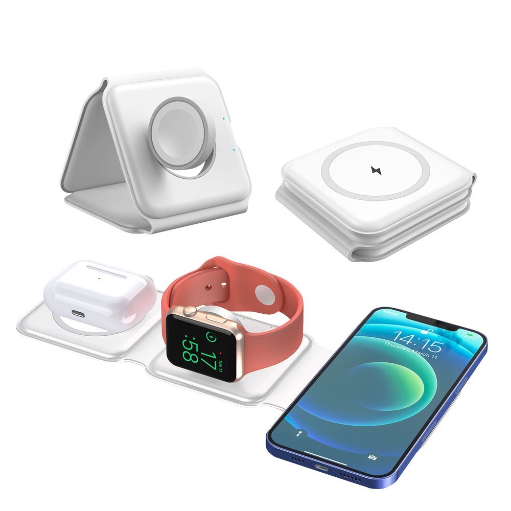 > 3in1 ワイヤレス充電器 急速充電 15W applewatch充電器 iphone12/13/14 applewatch2/3/4/5/6/7/8/9/SE Airpods1/2/pro3 Android ホワイト