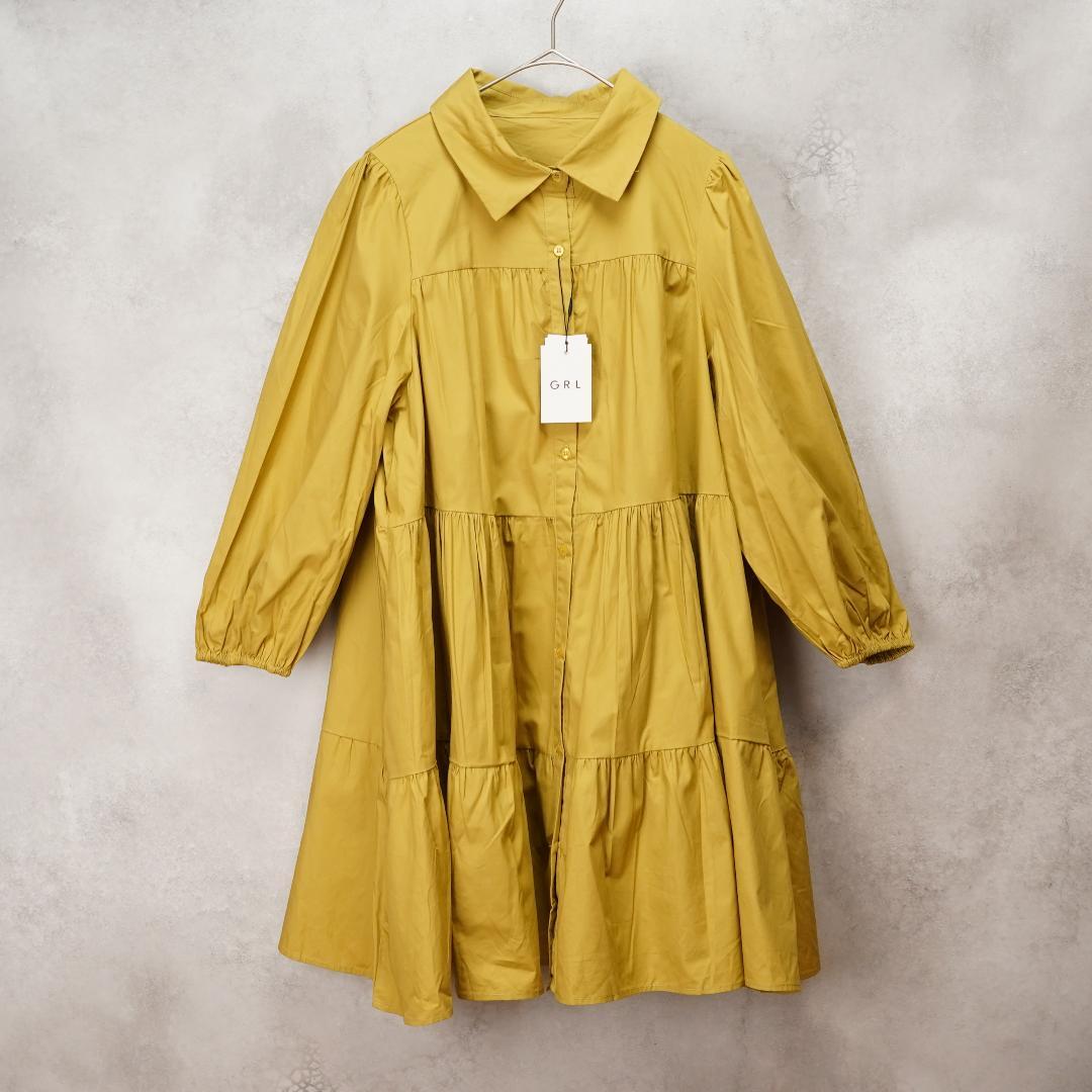 - 新品 GRL ワンピース イエロー M 綿 タグ付き 長袖