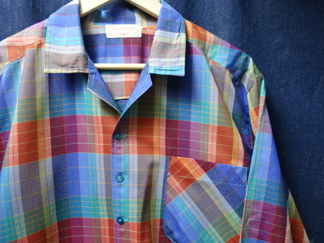 > USA アメリカ 古着 ビンテージ 80'S 90'S オープンカラー 開襟 ボックス丈 長袖 チェック シャツ / ヴィンテージ VINTAGE / 30