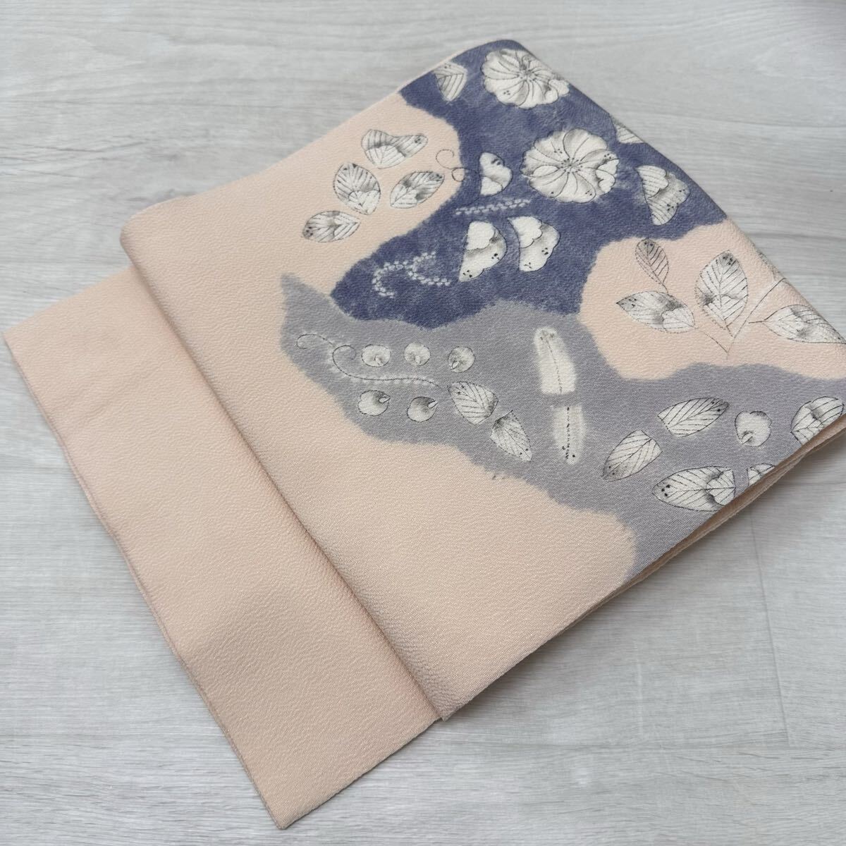 - 名古屋帯 ちりめん 長尺 美しい辻ヶ花 染め 九寸 正絹 着物 W-4653