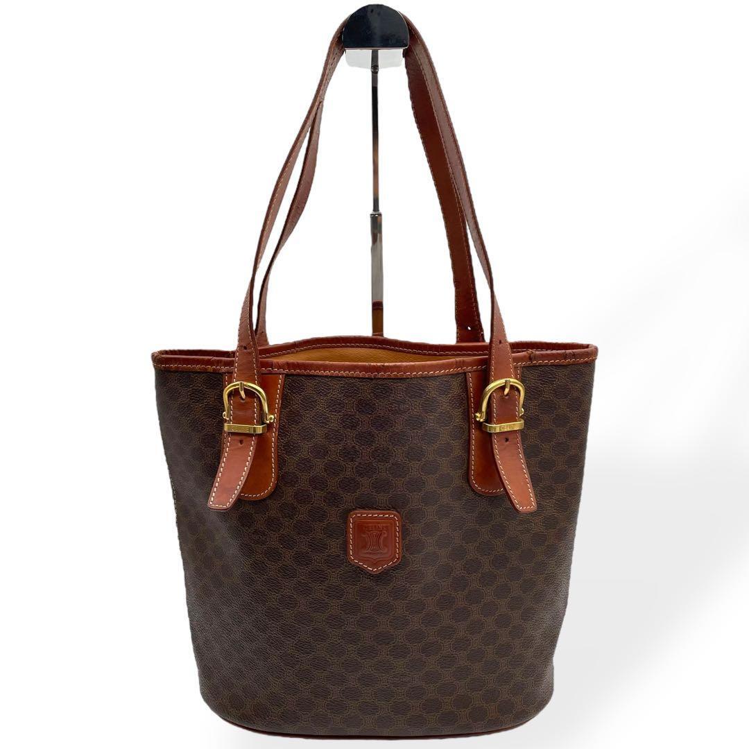 - 良品 CELINE セリーヌ ハンドバッグ 肩掛け マカダム ブラウン 総柄