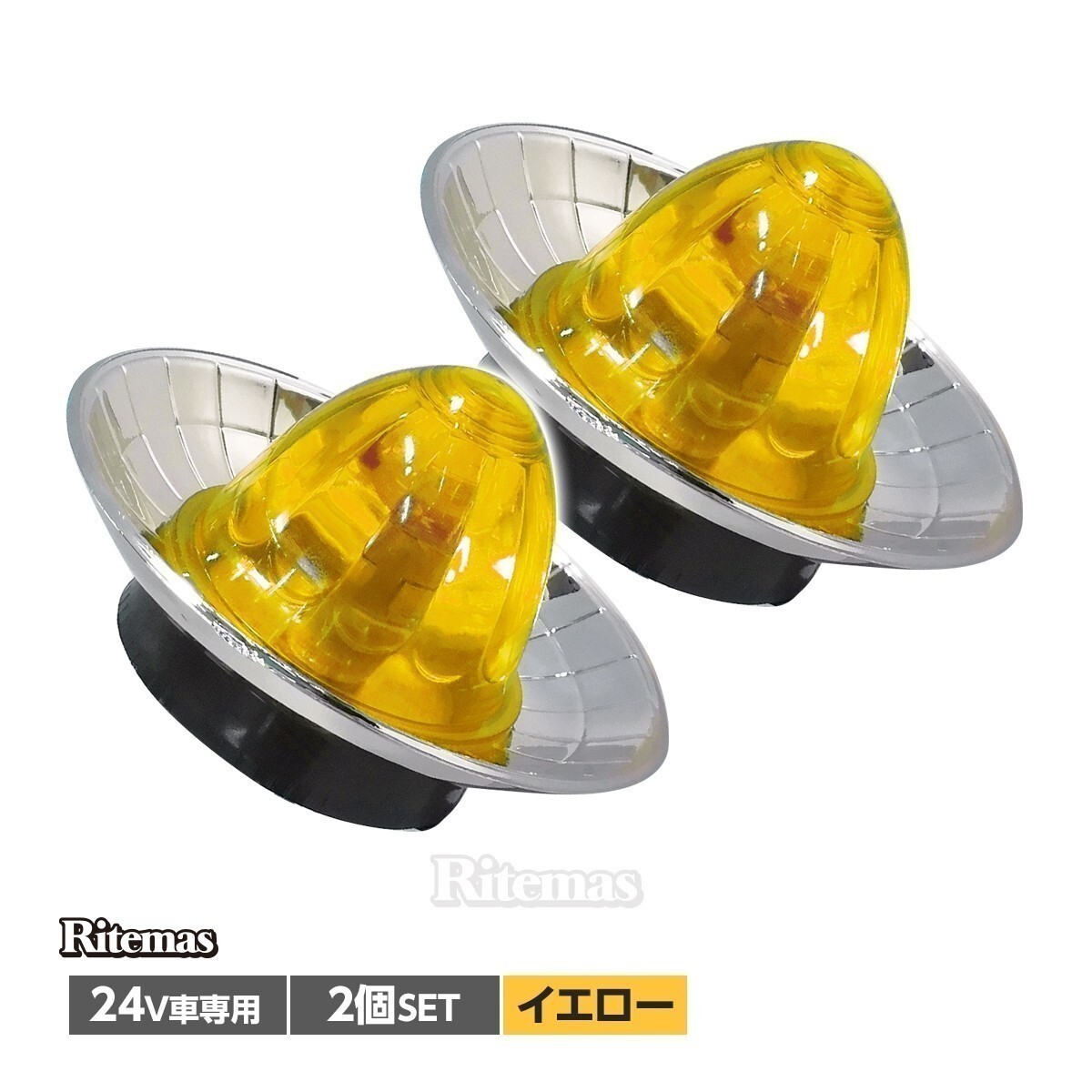 - トラック サイドマーカー メッキリング マーカーランプ ドアサイドマーカー デコトラ 汎用 24 専用 車幅灯 路肩灯 車高灯 イエロー 2個