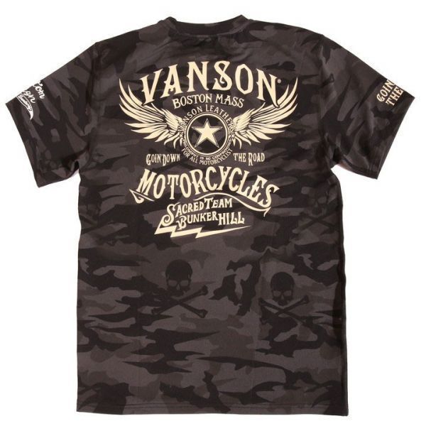 > VANSON ドライ 半袖Tシャツ ウィング ACV-901 カモフラ【XL】 吸汗速乾 抗菌防臭 UVカット 当店別注 バンソン 吸水速乾 男女兼用 迷彩柄