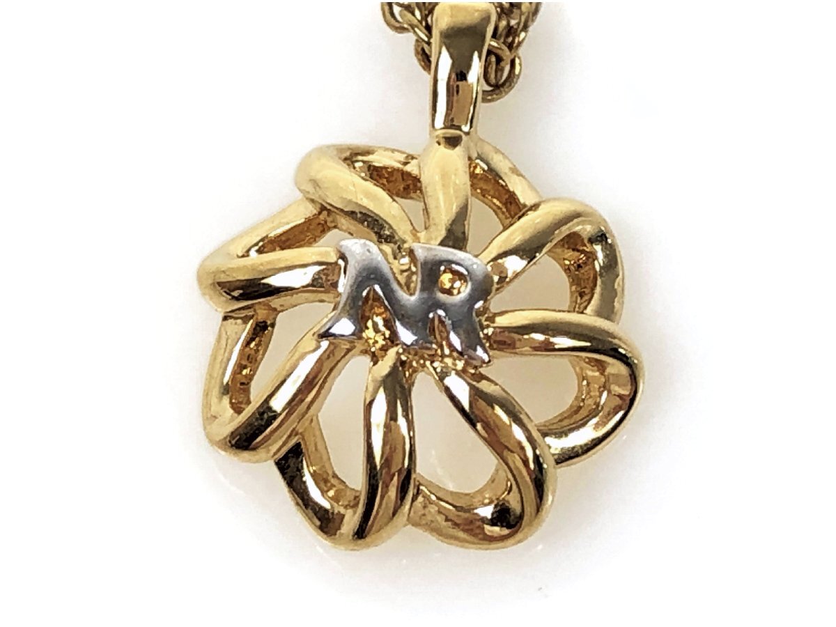 - 美品 ニナリッチ NINA RICCI フラワーモチーフ NRロゴ ネックレス ゴールドカラー YAS-8585