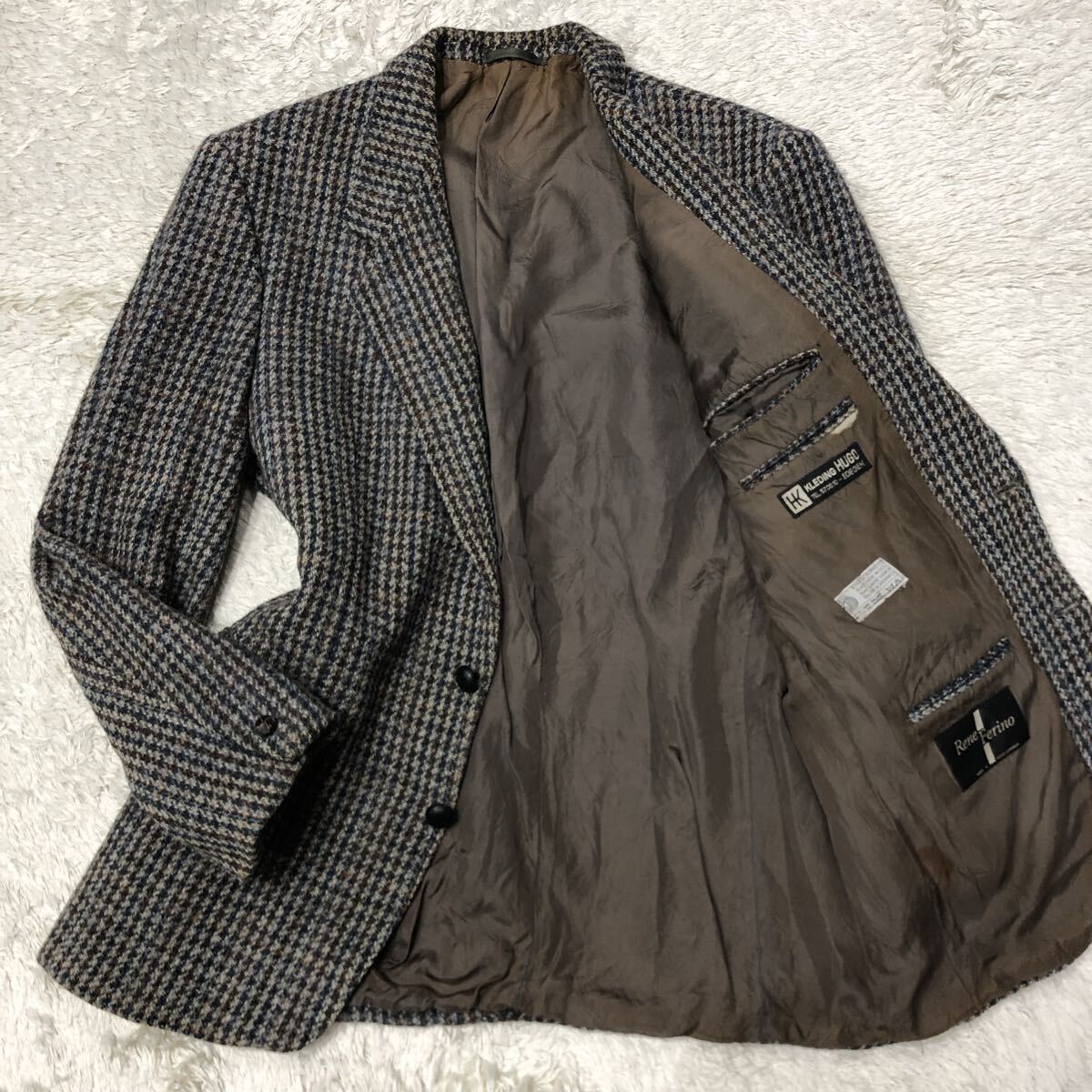 > 希少L!ハリスツイード【圧巻のツイード】Harris Tweed テーラードジャケット グレー系 2B くるみボタン 総裏地 秋冬◎