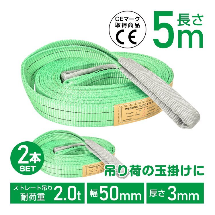 - 送料無料 スリングベルト パレット吊り ベルトスリング ラウンドスリング 5m 2本 玉掛け 運搬ベルト 重量物 クレーン 倉庫 sg177-5m