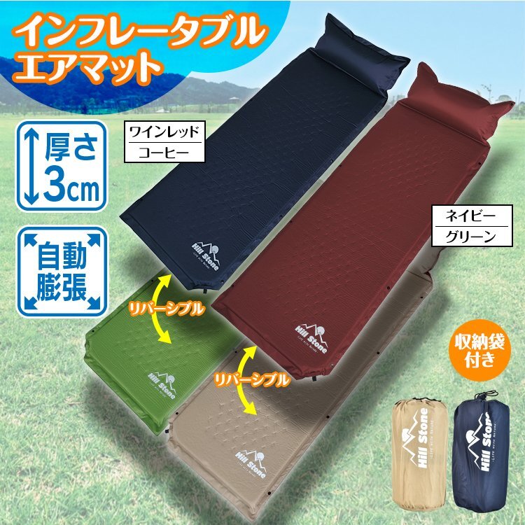 - 送料無料 インフレータブル エア マット キャンピングマット キャンプ用 エアマット エアーマットレス レジャー リバーシブル ad068