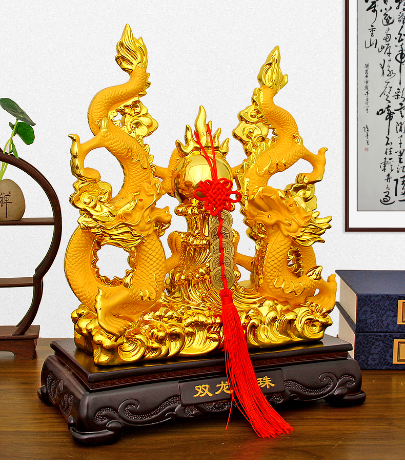 1.8kg【限定品】工芸品両龍戯珠置物1011-YS-128D