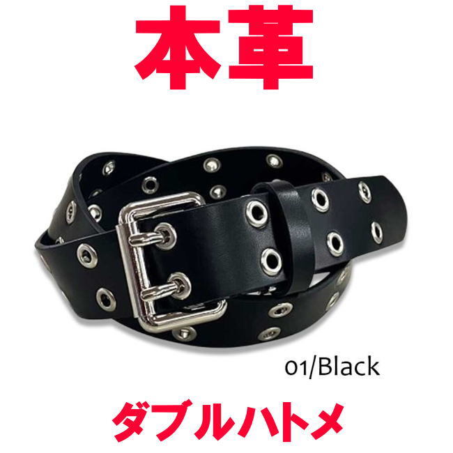 - ブラック オイルレザー 40mm Wハトメベルト 619 本革 牛革 メンズ レディース