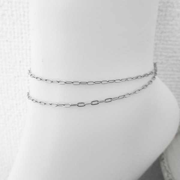 - ステンレス アンクレット 2連小豆 幅2mm FN124 26cm(22+4cmアジャスター)