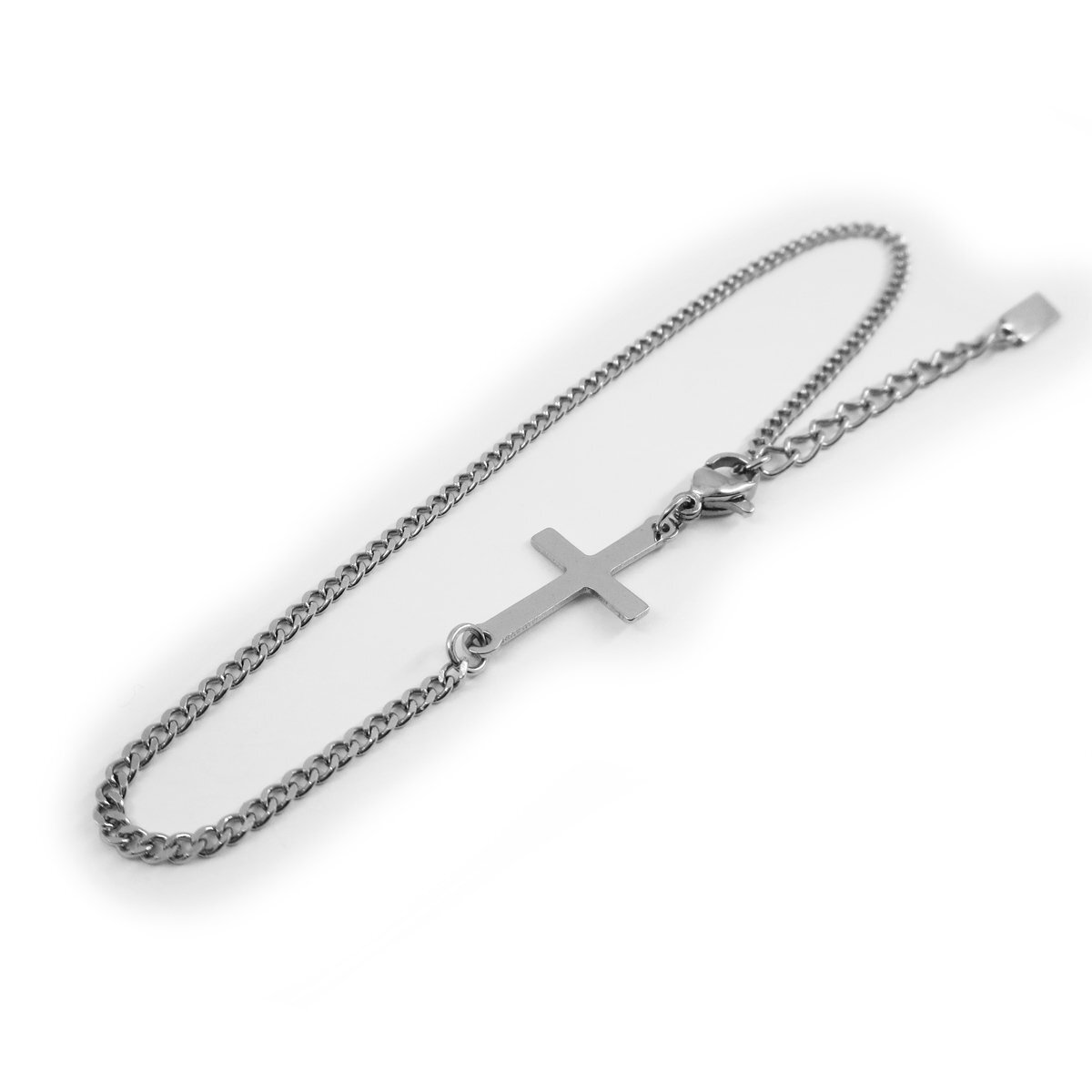 - ステンレスアンクレット クロス 2面カット喜平チェーン幅2.2mm 28cm(24cm+4cmアジャスター) GN24