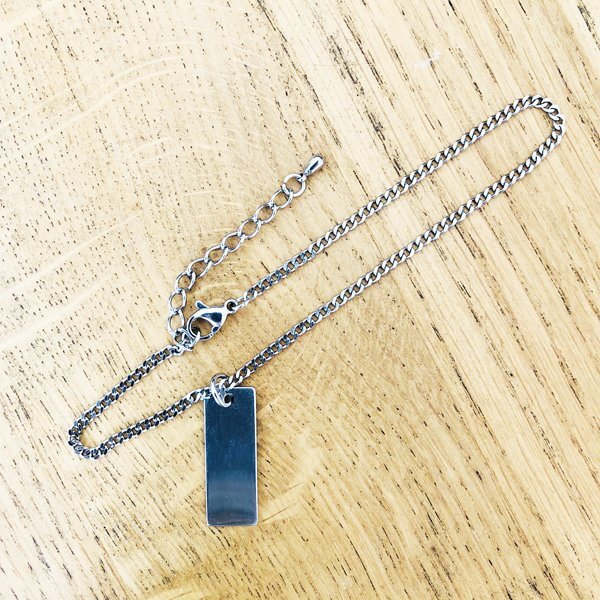 - ステンレスチェーンアンクレット 2.2mm幅 2面カット喜平チェーン プレートチャーム(約25x9mmx0.9mm)付き 25cm(21cm+4cmアジャスター)