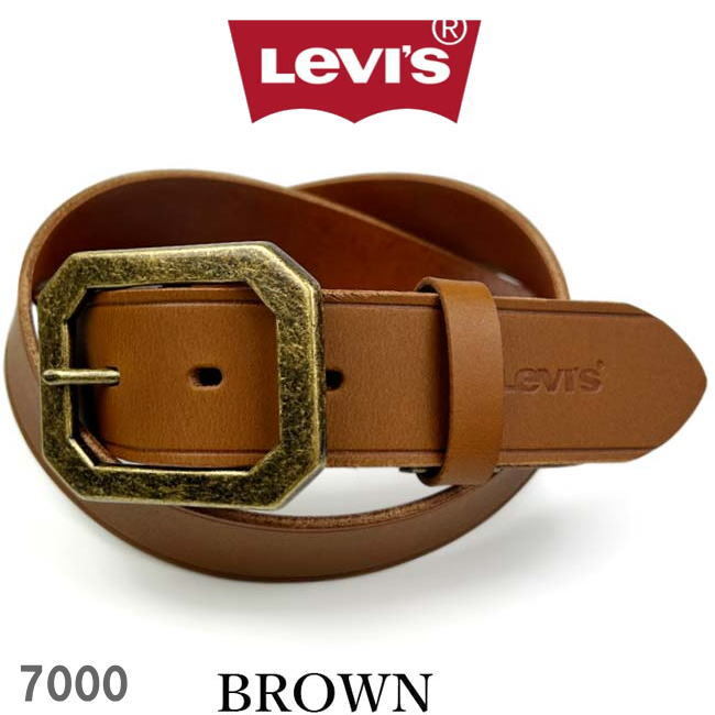 - ブラウン リーバイス リアルレザー 7000 捻引き オクタゴン ワイド ベルト メンズ レディース