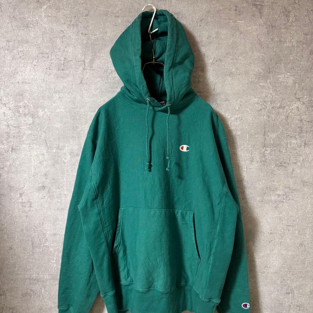 - Champion チャンピオン リバースウィーブ スウェット トレーナー プルオーバーパーカー 刺 緑 グリーン