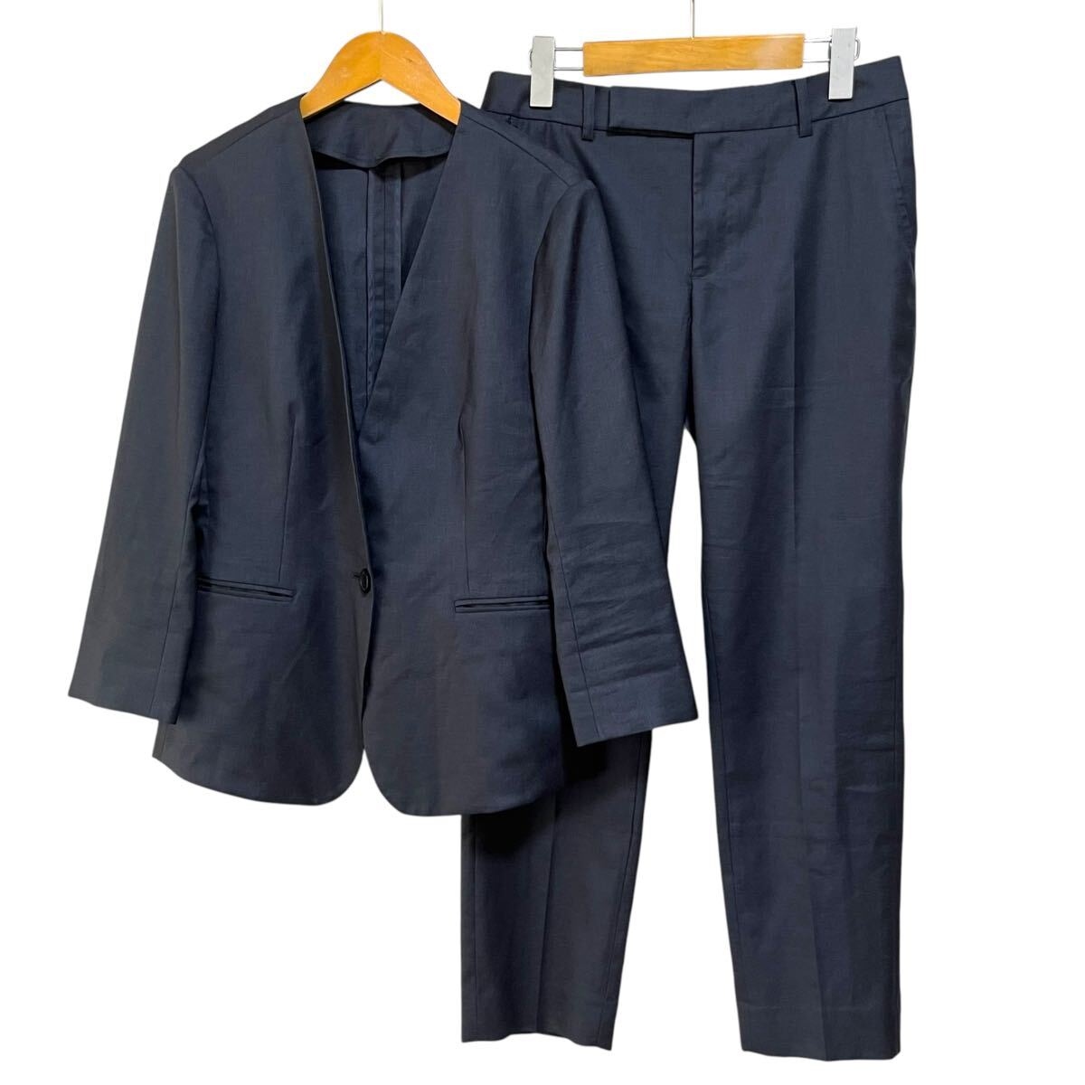 - ※SU2 THE SUIT COMPANY SHE スーツカンパニー レディースセットアップ パンツスーツ ネイビー ノーカラージャケット スラックス XL相当