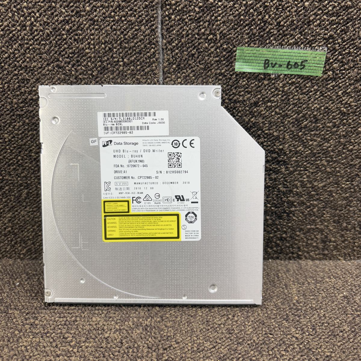 - BV-605 激安 Blu-ray ドライブ DVD ノートPC用 スリム 9.5mm HITACHI LG BU40N 2018年製 Blu-ray、DVD再生確認済み 中古品