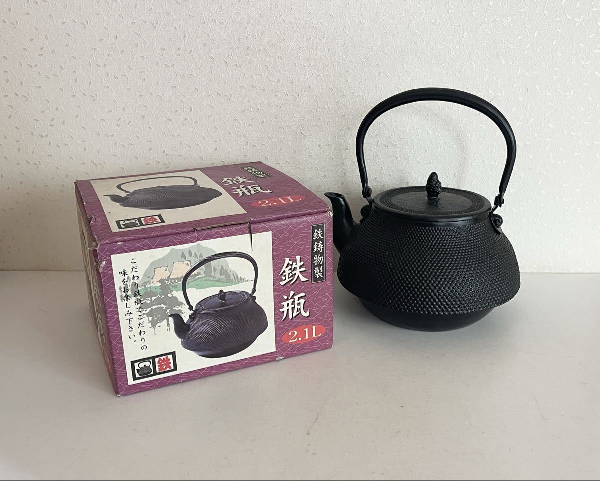 - 【未使用品 保管品】昭和 昭和レトロ 鉄瓶 武田貿易株式会社 鉄鋳物製 2.1L 元箱付き 現状渡し 急須 茶道具
