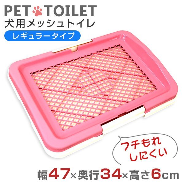 - 【ピンク】犬用トイレ メッシュタイプ 幅47×奥行34×高さ6cm イタズラ防止 フチ漏れしにくい ペット トイレ しつけ 足濡れ防止