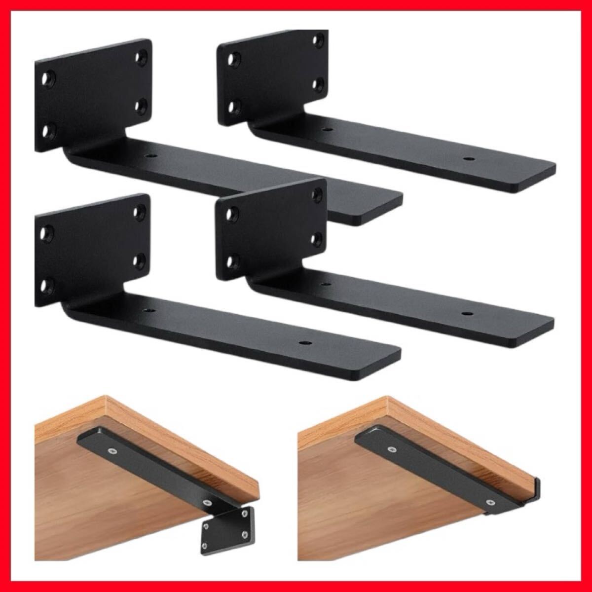 - HIMOMO 棚受け金具 4個セット 隠し棚受け 荷重70KG以上 長さ15cm 6インチ 厚さ5mm 高耐荷重 棚受け金具 見えない 厚み(ブラック 15cm)