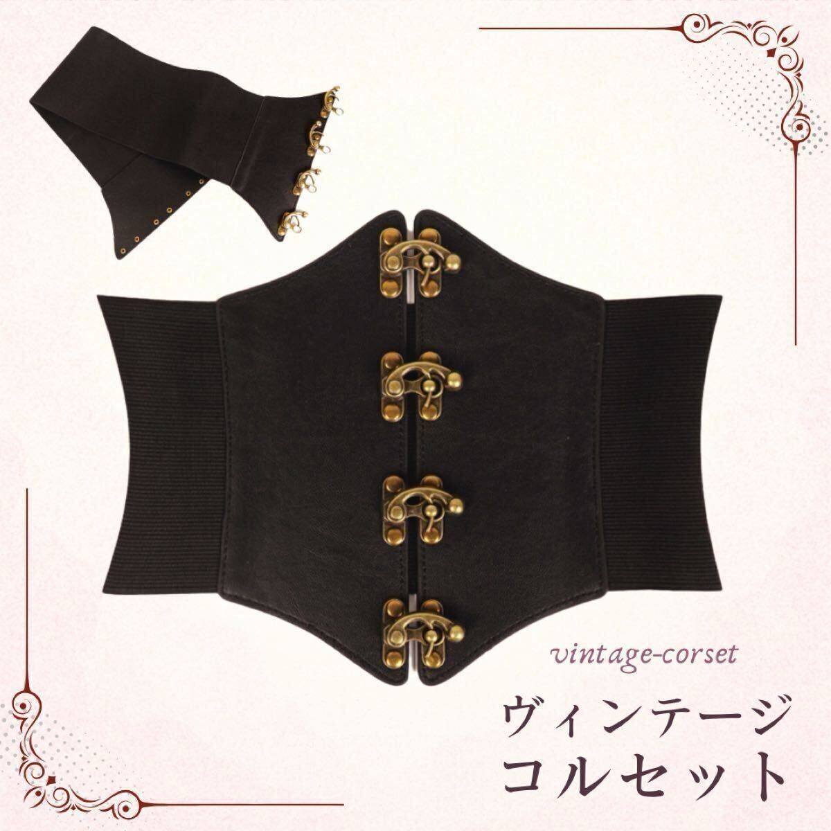 - コルセット ブラック ミニコルセット 金具 フェイクレザー ロリィタ 姫ギャル