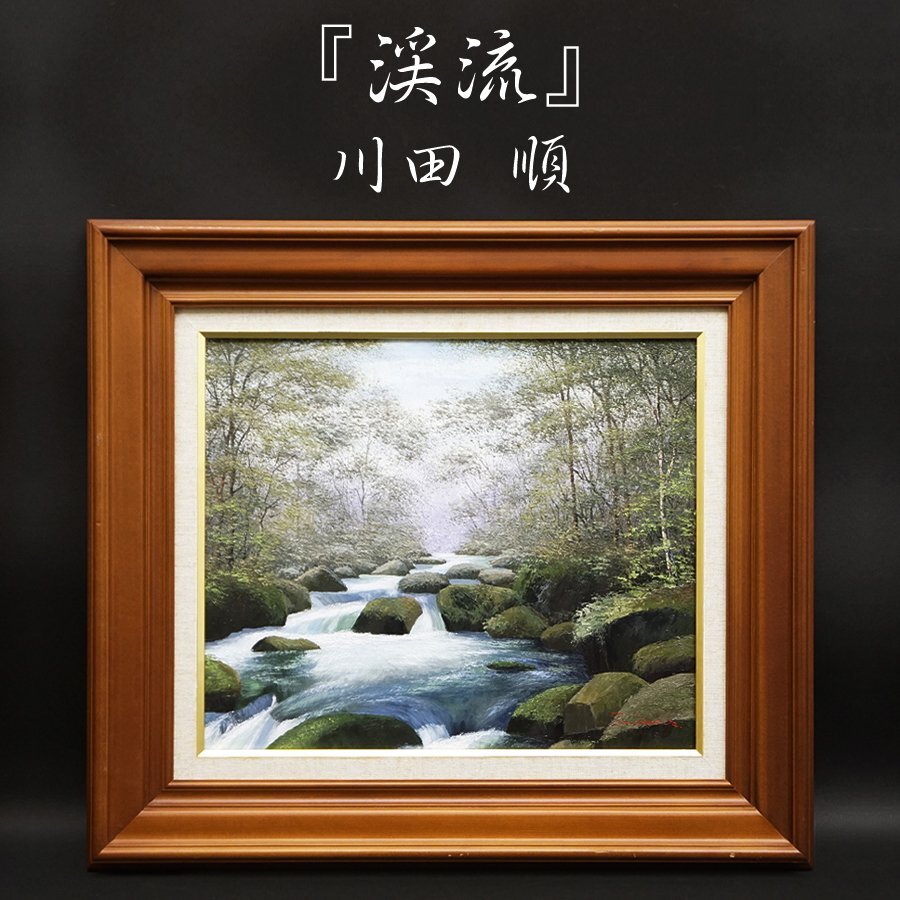 - 川田順『渓流』リアリズム 8号 油彩 油絵 直筆 風景画 裏書サイン 絵画 額装 美術 芸術 アート 古美術品 真作保証品