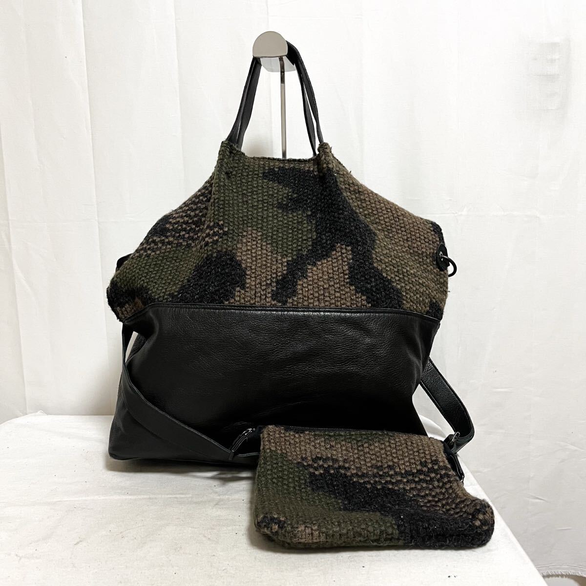 > 和858★ LANZETTI ランゼッティ トートバッグ ショルダーバッグ レザー ニット 切替 迷彩 カモ ブラック ブラウン レディース ポーチ