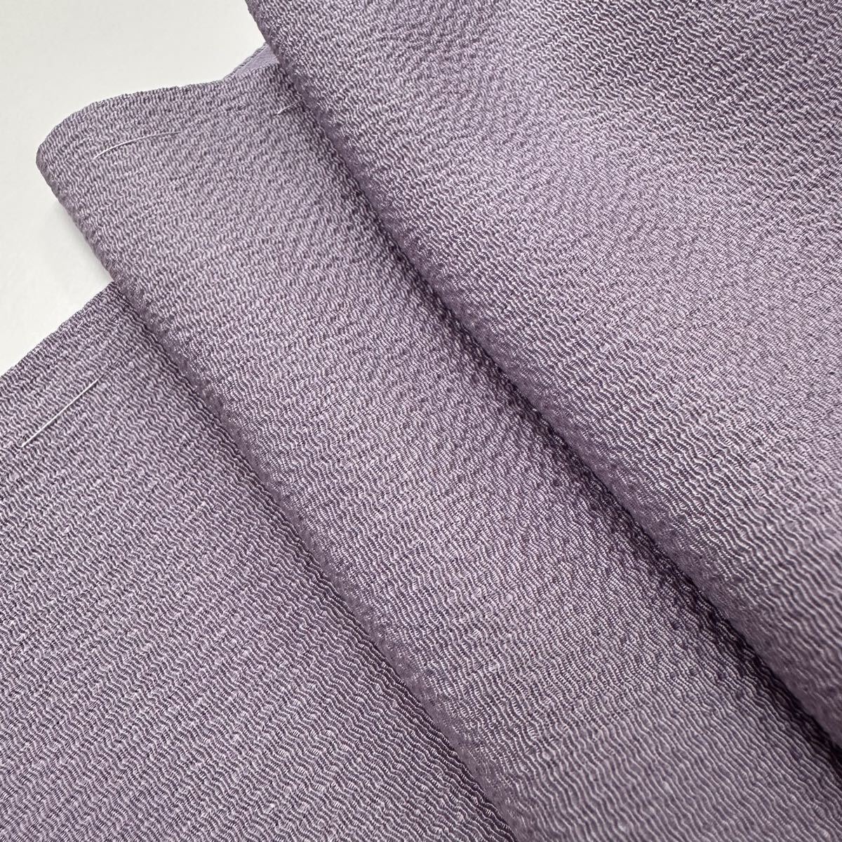 - 色無地 ちりめん 上品な薄紫 着物 正絹 一つ紋 袷 広衿 W-4660