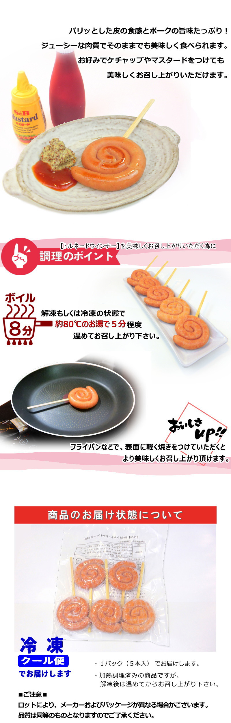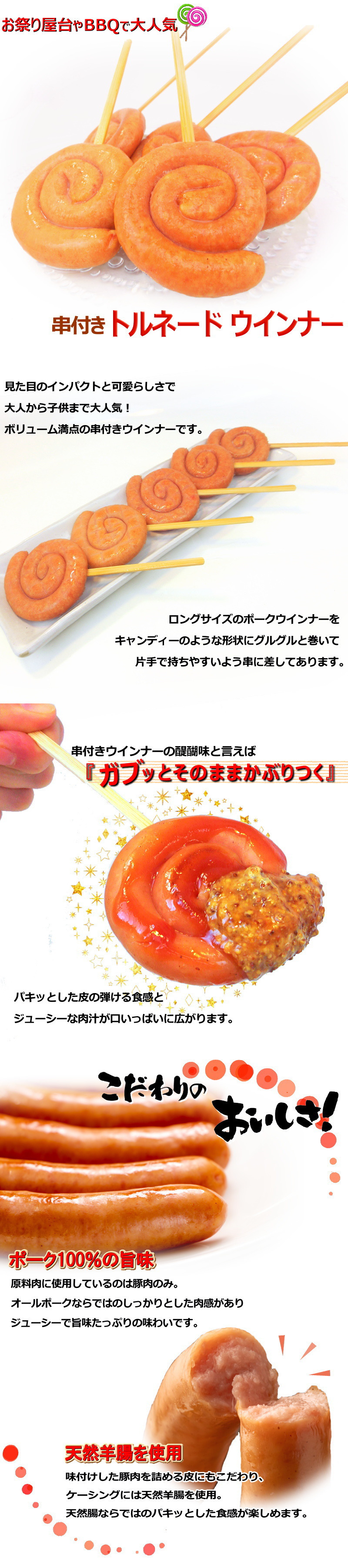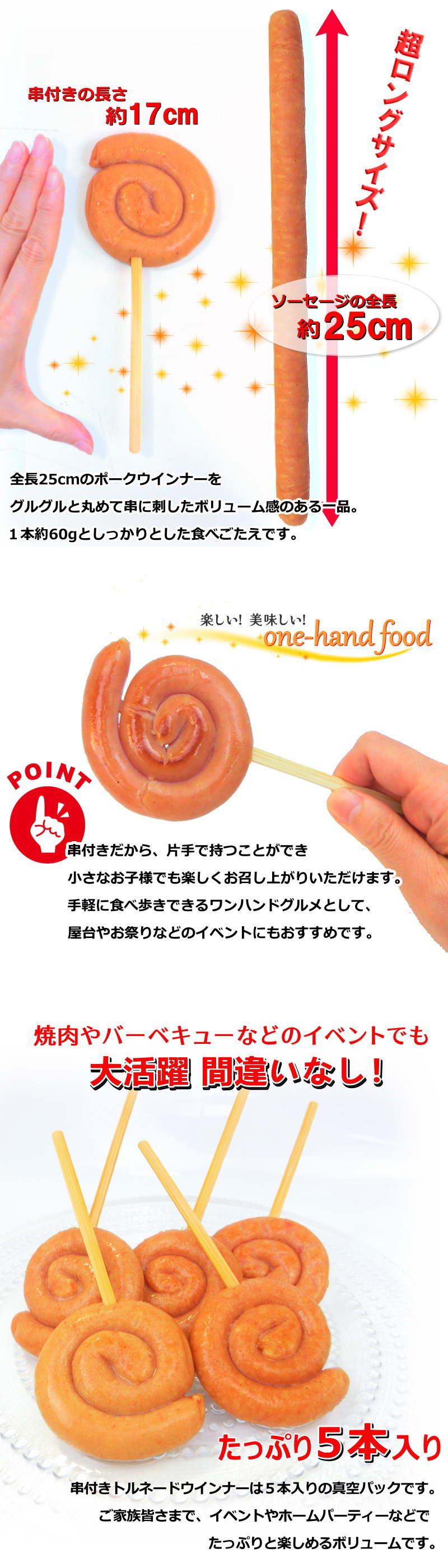 - 【Max】グルグル!串付 トルネードウインナー 5本入り BBQやイベントに ポーク100% ぐるぐるウインナー ポークソーセージ