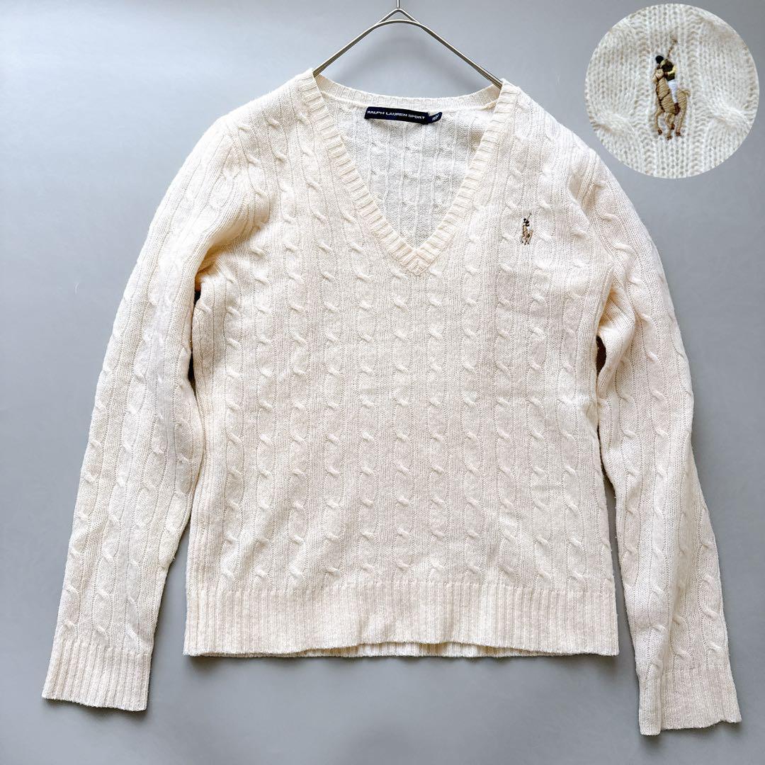 > RALPH LAUREN SPORT ラルフローレンス ケーブルニットセーター ワンポイントポニー刺繍 Lサイズ トップス コットンニット レディース