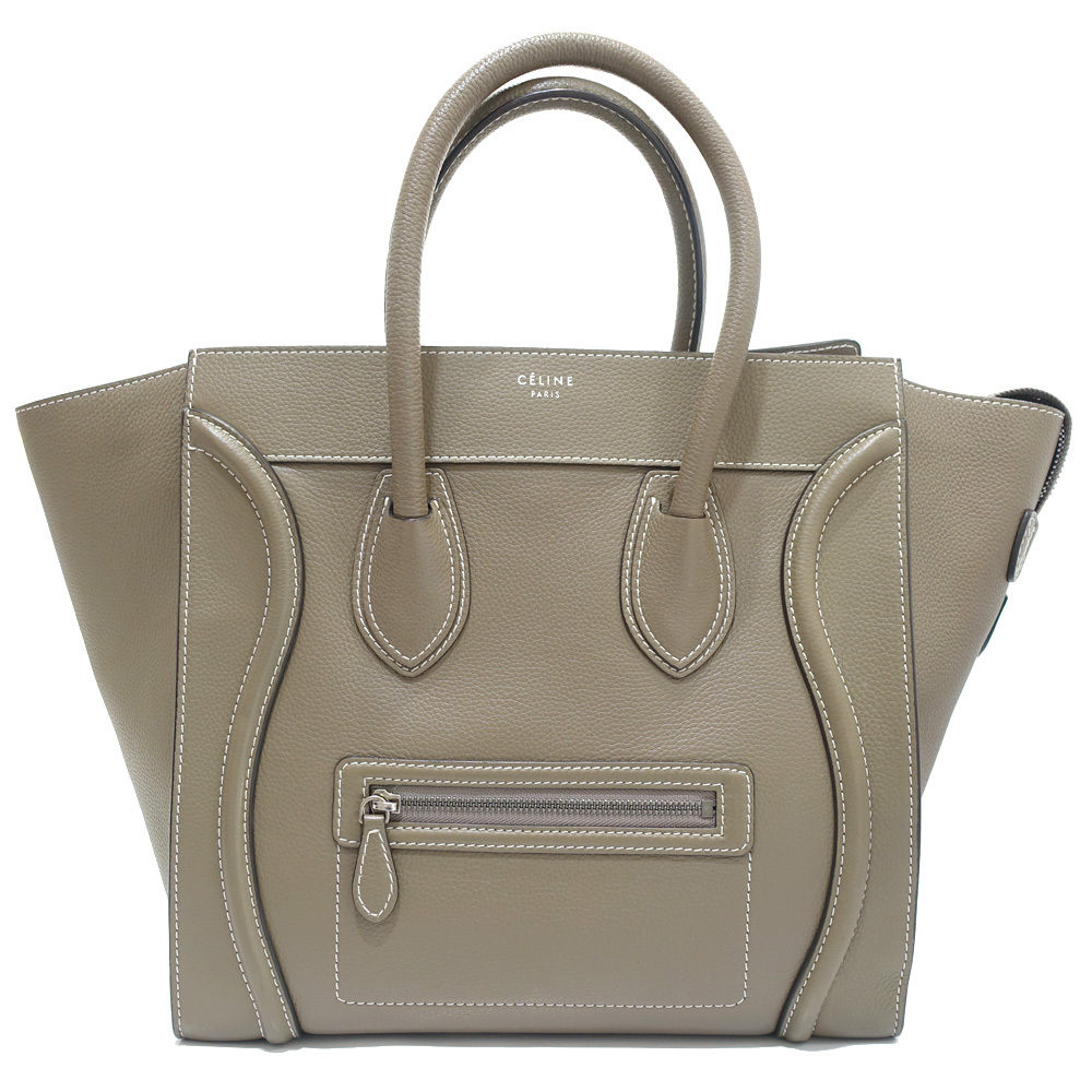 - 【栄】セリーヌ ラゲージ ミニ 165213LUG カーフスキン グレージュ シルバー金具 ハンドバッグ レディース 女性 保存袋