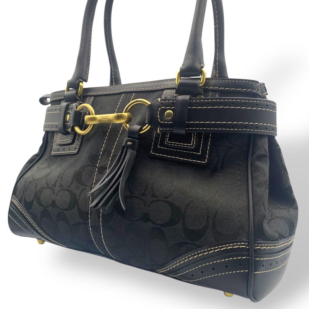 - 極美品 COACH トートバッグ シグネチャー キャンバス レザー タッセル 黒