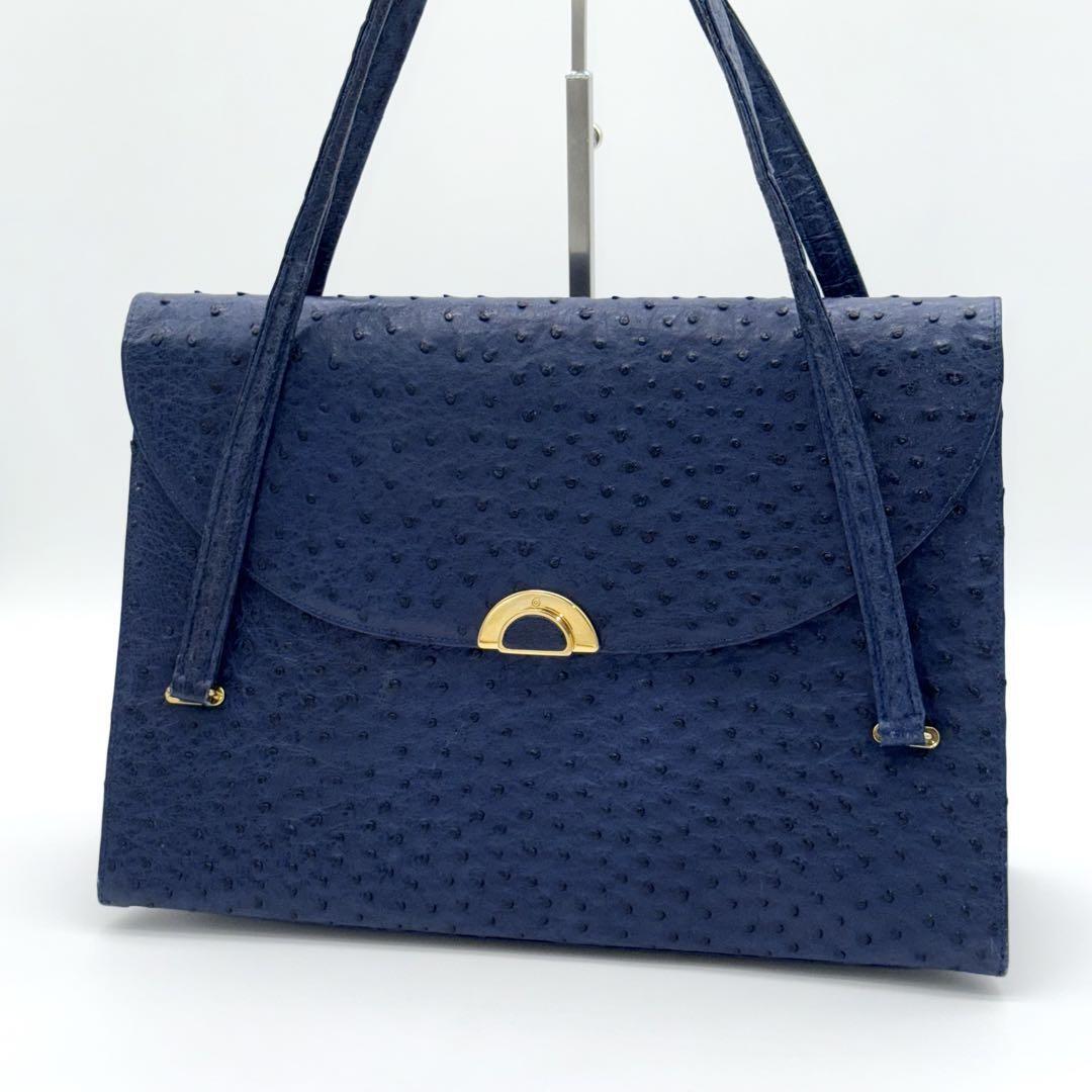 - 【IRV認定・美品】Comtesse コンテス OSTRICH オーストリッチ ダチョウ ハンドバッグ セミショルダーバッグ 肩がけ ブルー系 DB121002L