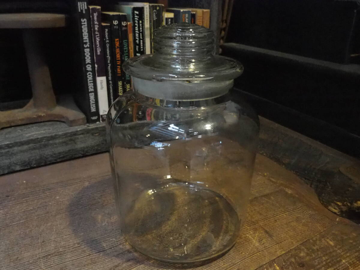 - 【蓋付ガラス瓶】金魚カフェ古道具アンティーク猫瓶キャンディポット駄菓子屋ピクルス米櫃ガーデニング観葉植物インテリアドライフラワー