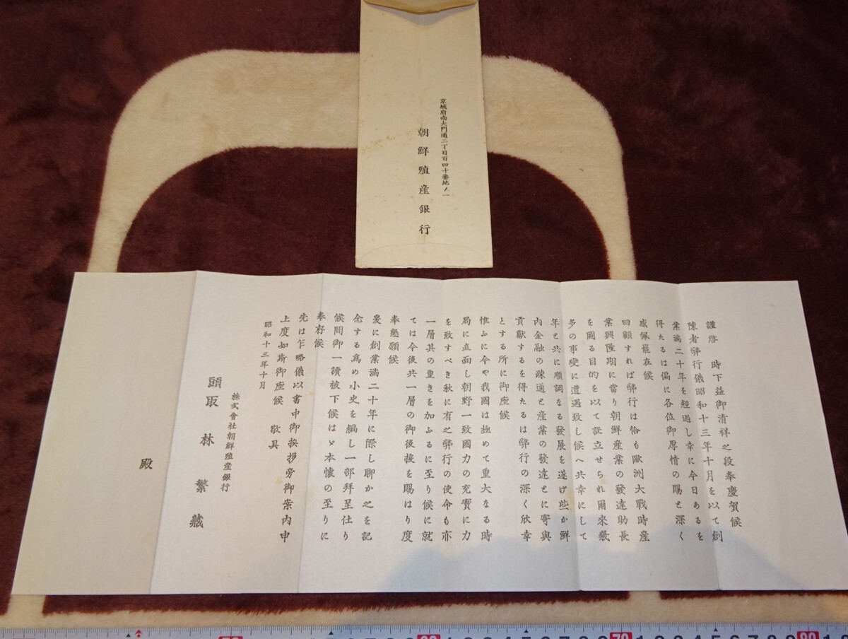 - rarebookkyoto o220 朝鮮 京城 殖産銀行 二十年史感謝手紙 封筒付き 1939 年 満洲 事変 李王家 溥儀