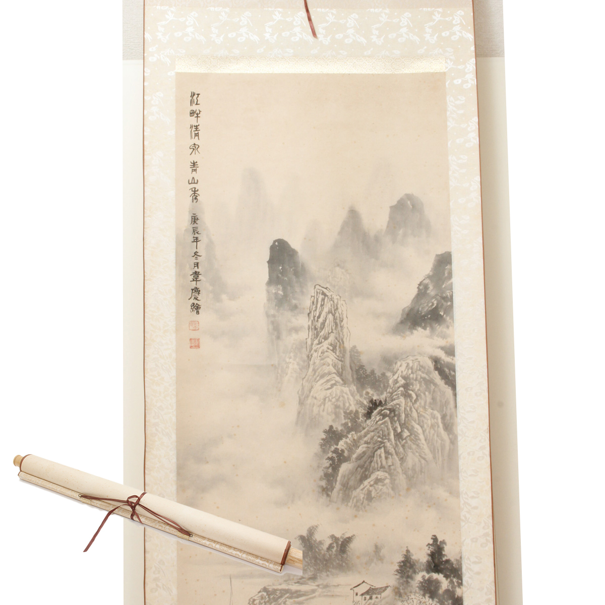 - 掛け軸 紅畔情泉青山秀? 作品約135cm×50cm