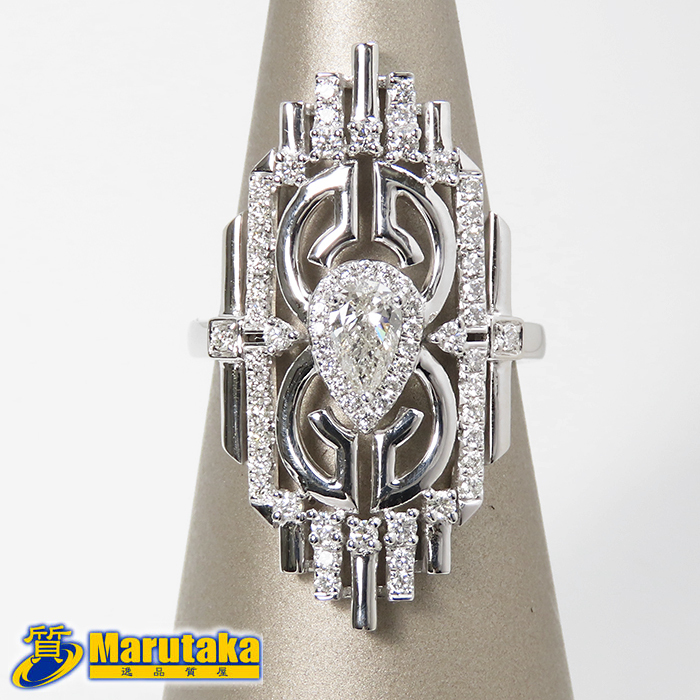 > 【Pt900 ダイヤモンド リング】プラチナ ペアシェイプカット ダイヤモンド 0.304ct I/SI1 ソーティング付 指輪 レディース ジュエリー 中古