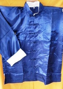 - 太極拳用サテンシルクカンフー服上下★2紺L★