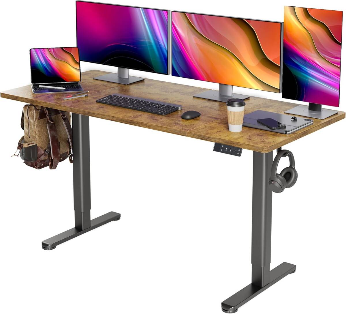 > ブラウン色 幅160cm×奥行き60cm Claiks 昇降デスク 電動 スタンディングデスク 昇降式 テーブル テレワーク オフィスデスク