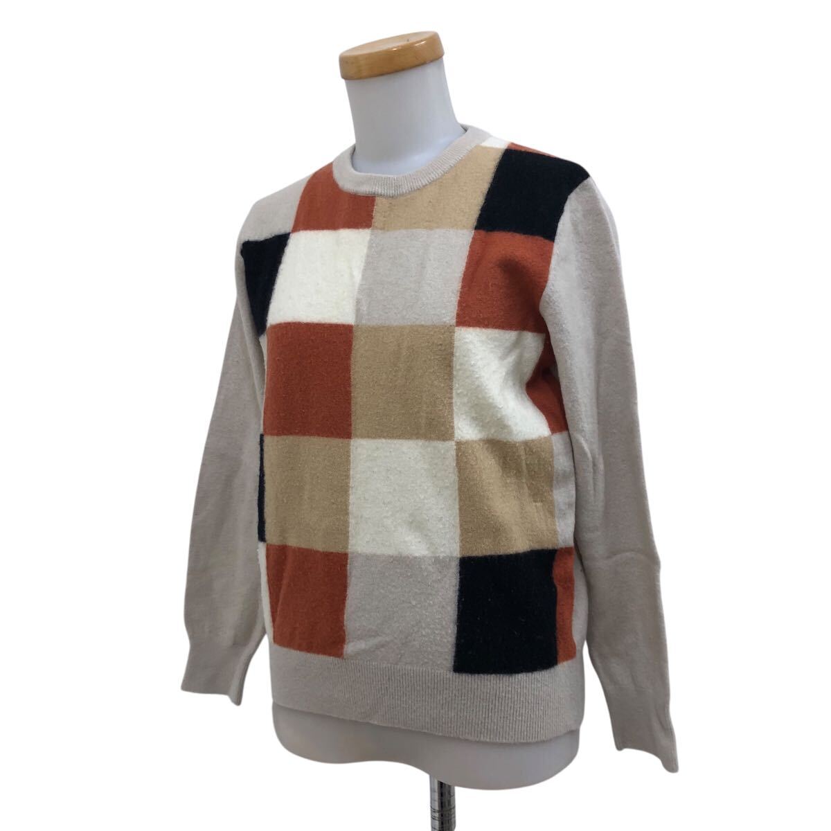 > 10NK006-64 DAKS ダックス LONDON ロンドン ニット セーター 丸首 トップス 長袖 ベージュ系 総柄 レディース 女性用 M