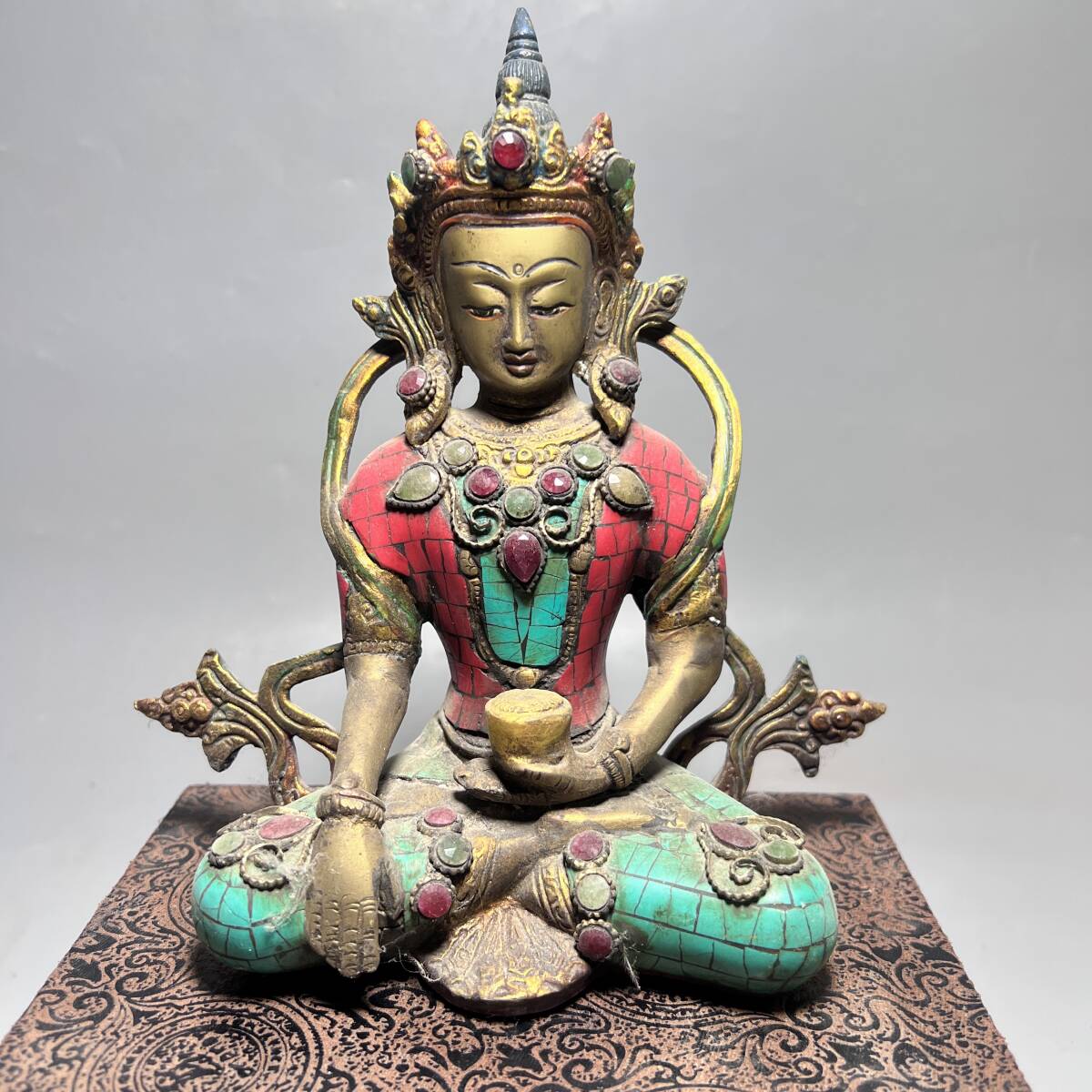 - 旧家蔵出し チベット収集 銅製細作 塗金 寶石嵌 度母像 蓮花座 仏像 密宗密教 仏教 逸品仏具 極細工 置物擺件 美術品 旧家蔵出 旧家供養品
