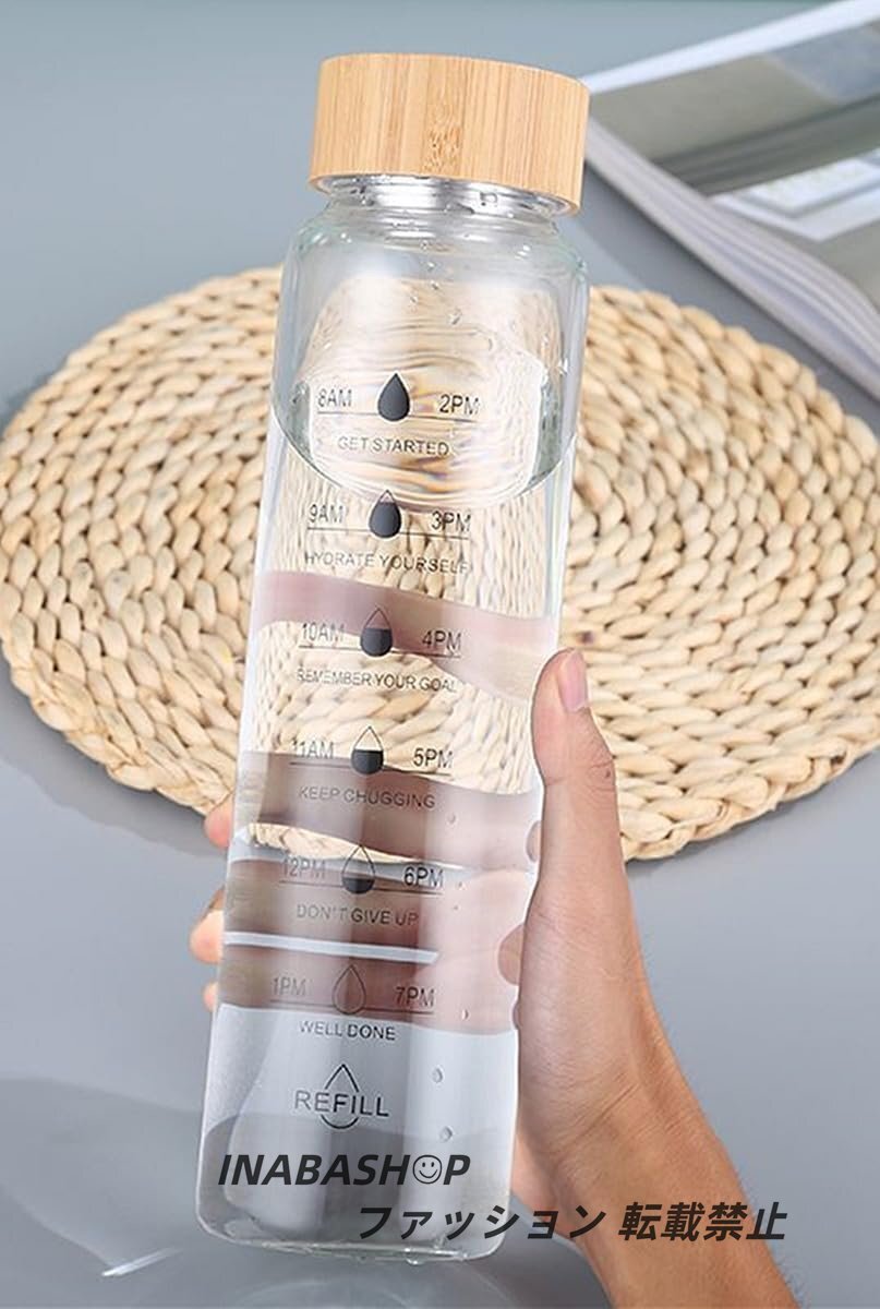 - ウォーターボトル ガラスコップ 茶こし付き水筒 竹の蓋 タイムマーカー付きウォーターボトル (1000ML)