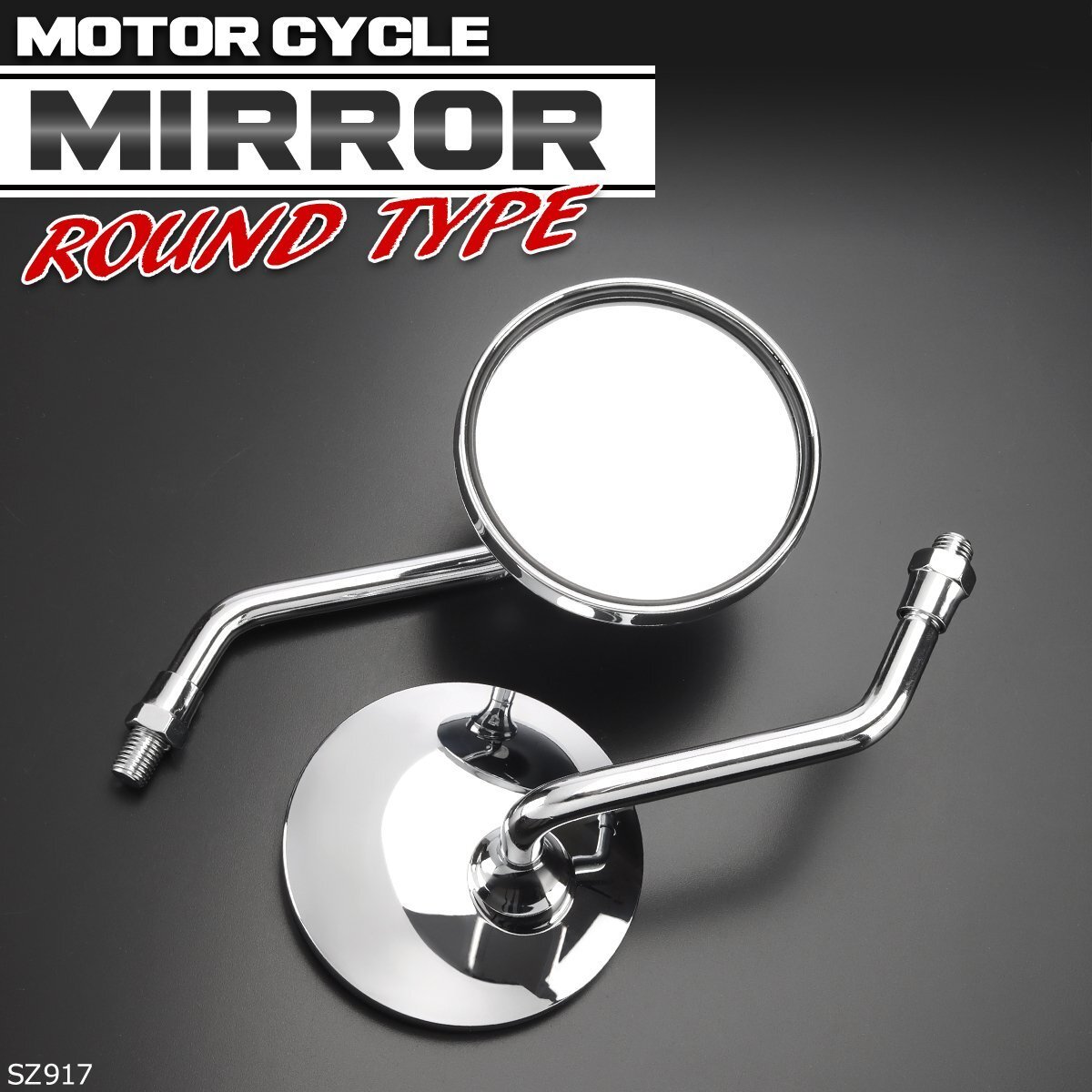 - 汎用 丸型 ラウンド型 オーバルミラー クロムメッキ 左右セット M10正ネジ バイク用 SZ917