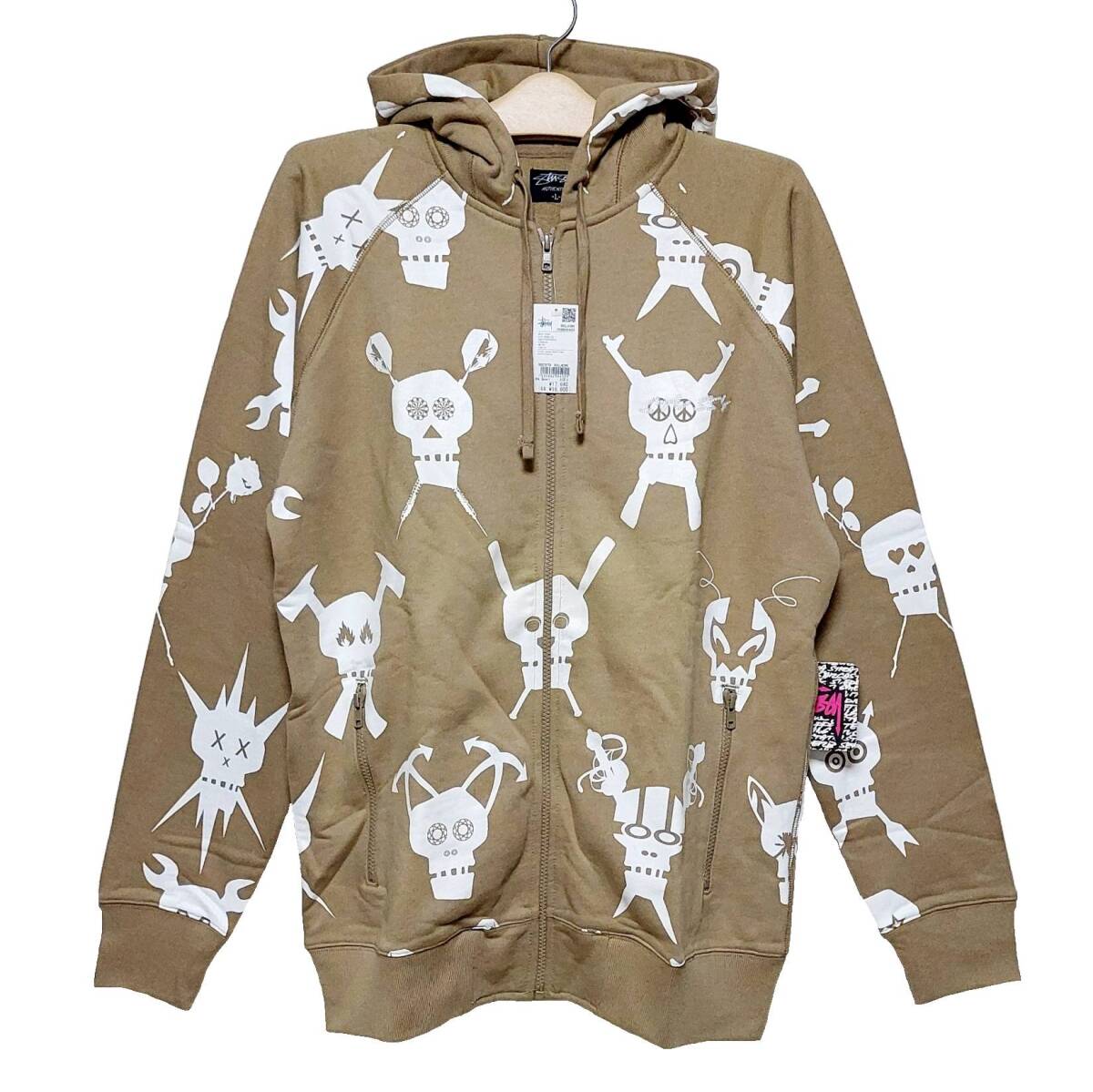 - 超激レア希少!新品タグ付き!STUSSY×FUTURA ステューシー×フューチュラ/ドクロ総柄/ロゴ刺繍コラボ限定スウェットパーカー L モカ