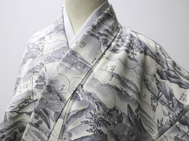 > 《京都一輝堂》【着物】 リメイク 小紋 東海道五十三次 身丈約157cm 裄丈約64cm 24z-4542
